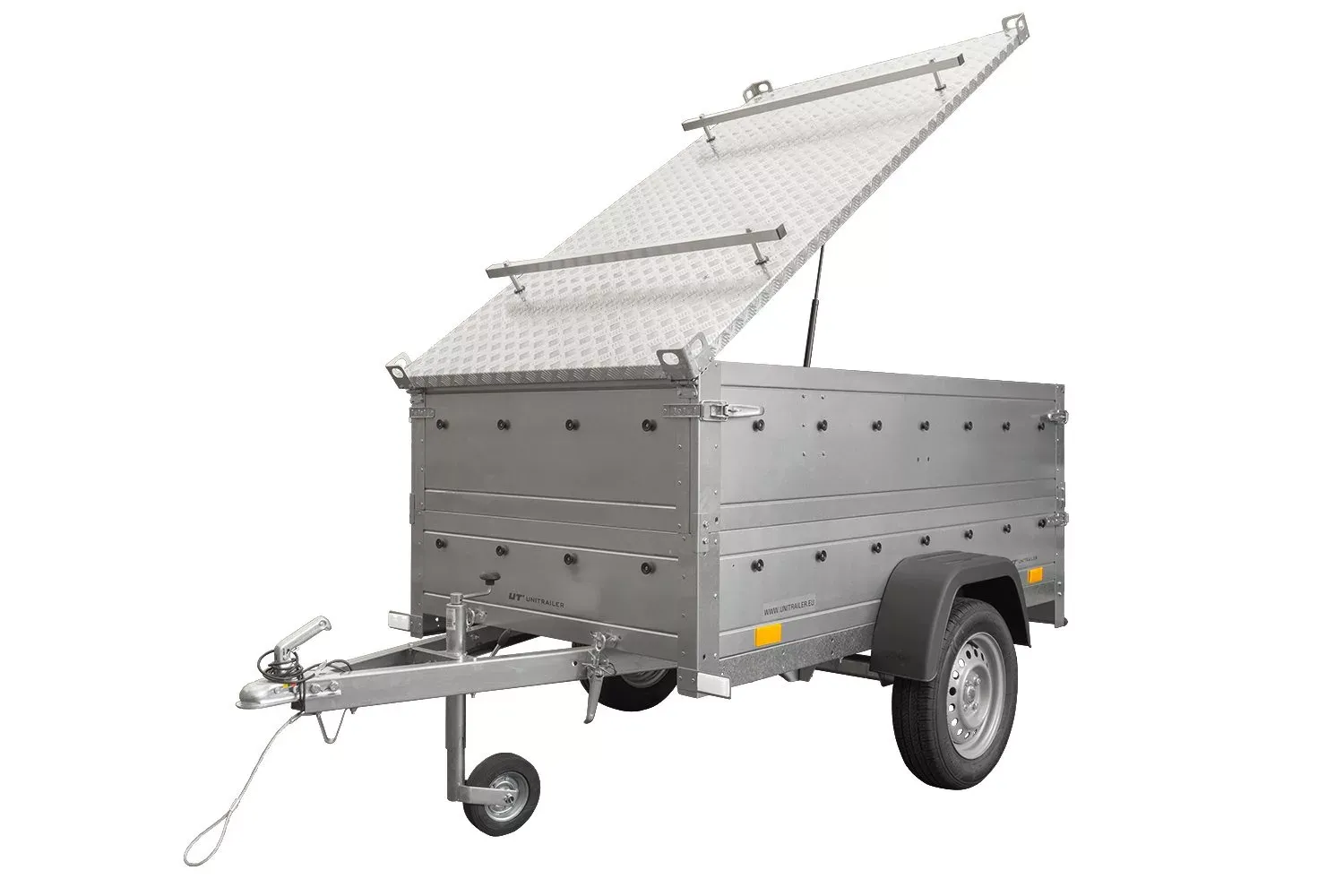 Der neue UNITRAILER Garden Trailer 200 KIPP ist ein vielseitiger, kippbarer Pkw-Anhänger im modernen Design und wird hier im Set mit Aluminium-Deckel angeboten. Dieses Modell kombiniert Stabilität, Sicherheit und maximale Flexibilität für den täglichen Transport.