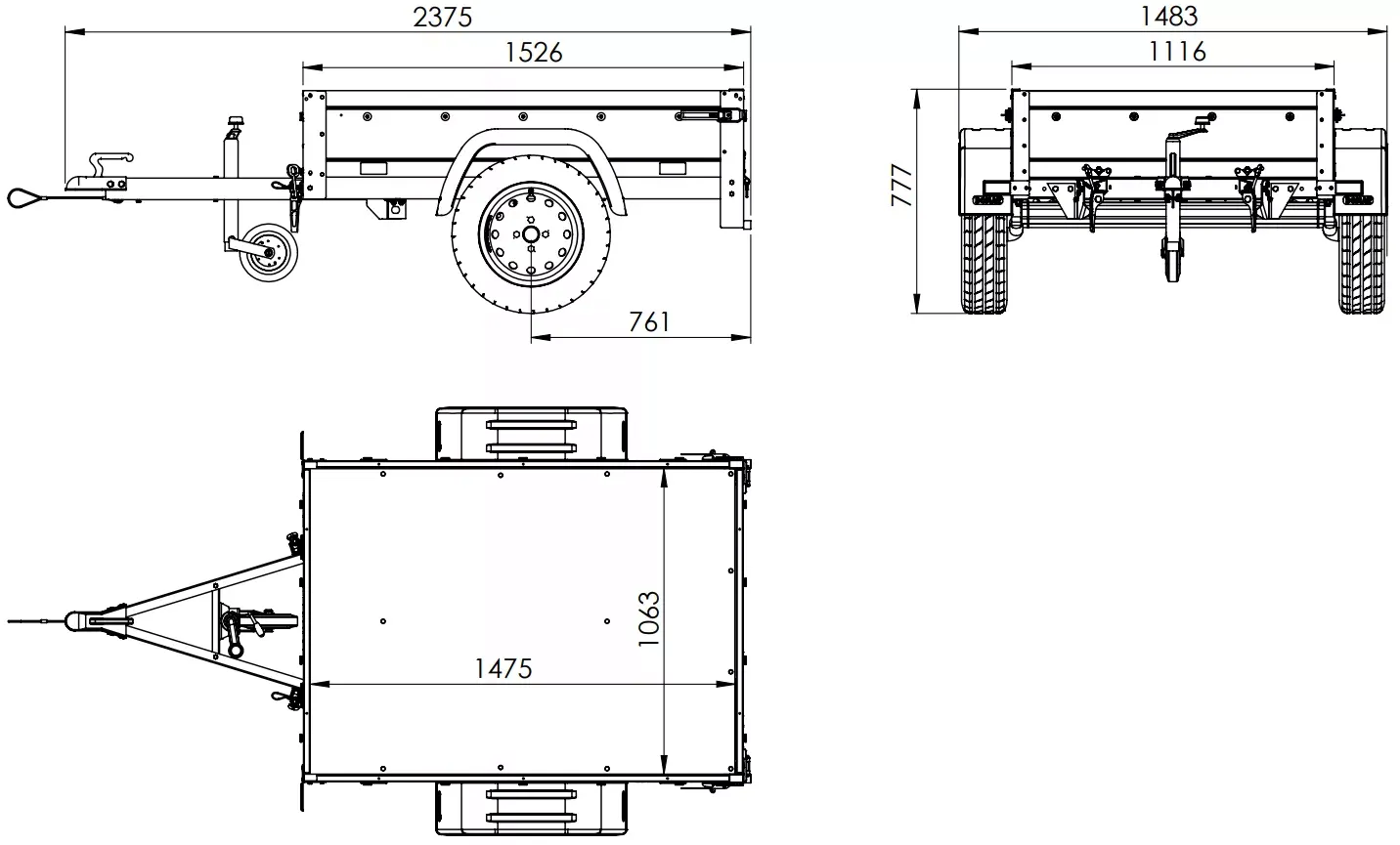 - Kippbare V-Deichsel, die jederzeit unter der Bodenplatte des Anhängers eingeklappt werden kann